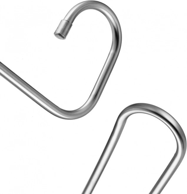 Vešiak je vyrobený z nehrdzavejúcej ocele, ktorá zaisťuje vysokú odolnosť a dlhú životnosť. Stabilná konštrukcia sa nedeformuje pod záťažou, takže sa hodí aj na ťažšie látky. Moderný kovový vzhľad sa hodí do každej šatne či skrine.