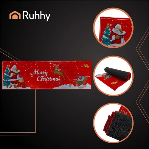 Objavte komfort a štýl v jednom. Vianočný koberček RUHHY s rozmerom 50 × 160 cm je z jemného, hustého polyesteru, ktorý je mäkučký ako plyš a príjemný pre bosé nohy. Protišmyková PVC spodná vrstva udrží behúň na mieste, takže je ideálny do rušných priestorov aj domácností s deťmi a domácimi miláčikmi.