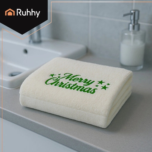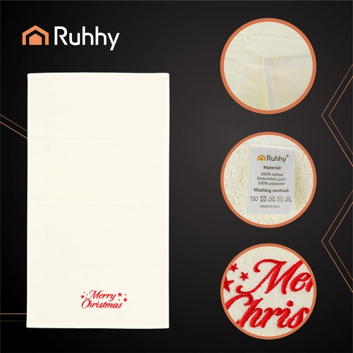 Štýlová sada dvoch vianočných uterákov RUHHY v farbách červená, zelená a biela prinesie do kúpeľne sviatočnú atmosféru. Sú z mäkkej a veľmi savnej bavlny, majú elegantnú výšivku „Merry Christmas“ a pohodlný rozmer 50×100 cm. Skvelé na každodenné používanie, prateľné v práčke a ideálne aj ako darček.