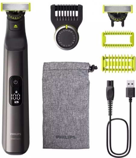 PHILIPS OneBlade Pro 360 je všestranný partner na každodennú úpravu vzhľadu. Unikátna technológia OneBlade s pohyblivou hlavicou 360° kopíruje kontúry tváre aj tela a umožňuje zastreihovať, ohraničovať a holiť fúzy aj chĺpky v akejkoľvek dĺžke – rýchlo, presne a s minimálnym podráždením.