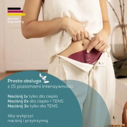 Prežite dni menštruácie komfortnejšie vďaka spojeniu technológie TENS a jemného vyhrievania, ktoré spoločne znižujú vnímanie bolesti v podbrušku. Prístroj stimuluje nervové vlákna cez kožu, podporuje uvoľňovanie endorfínov a prináša účinnú a prirodzenú úľavu bez medikácie.