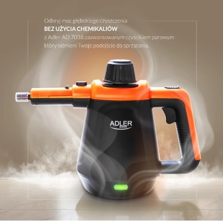 Ručný parný čistič ADLER AD 7038 je univerzálny pomocník na každodenné aj dôkladné upratovanie. Využíva horúcu paru na hygienické čistenie bez chemických prostriedkov – ideálny na dlaždice, okná, kuchynské a kúpeľňové plochy, čalúnenie a matrace (odstráni až 80 % roztočov). Ergonomické prevedenie a široká výbava príslušenstva uľahčia prácu v každom kúte domova, kancelárie aj auta.