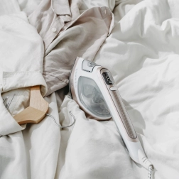 Keramická žehliaca plocha so špičkou ľahko kĺže a precízne žehlí okolo gombíkov. Štetinový nástavec pomáha odstrániť chĺpky a žmolky.