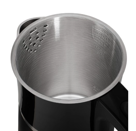 Plochá výhrevná doska z nehrdzavejúcej ocele zabezpečuje rýchle privedenie vody do varu a jednoduché čistenie dna kanvice.
