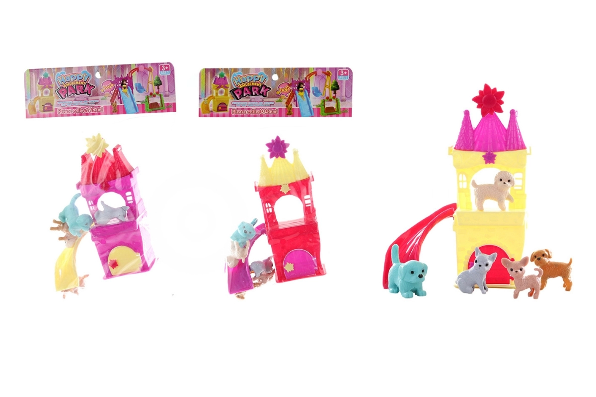 Roztomilá sada pre malých milovníkov zvieratiek prináša 5 psíkov a domček so šmýkačkou na hodiny zábavy a fantázie. Farebné prevedenie podľa dostupnosti, ideálna pre deti od 3 rokov. Kompaktné balenie s rozmerom cca 30 × 18,5 cm sa hodí ako darček aj na cesty.