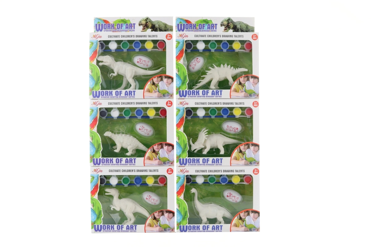 - Plastový dinosaurus, vajíčko, 6 farieb, štetec