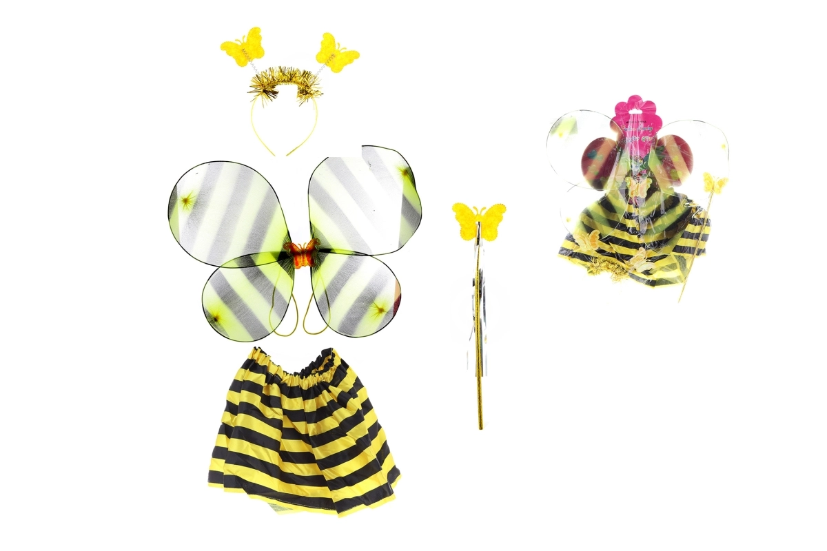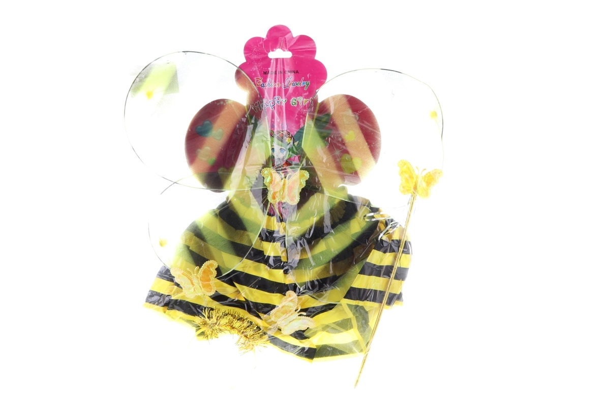 Táto hravá sada kostýmu včielky premení každé dieťa behom chvíľky na veselého bzučiaceho pomocníka. Ľahké priesvitné krídla, pruhovaná suknička s pružným pásom, trblietavá palička s motýlikom a čelenka s trepotajúcimi sa motýlikmi vytvárajú pôsobivý vzhľad bez zložitého prezliekania.