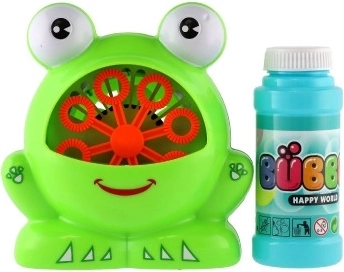 Zábavný prenosný stroj na výrobu bublín vo tvare žaby! Stačí naliať bublifuk do prístroja, zapnúť a užiť si množstvo nádherných dúhových bublín, ktoré dokáže žaba vytvoriť. Stroj funguje na 4 x AA batérie, ktoré nie sú súčasťou balenia.