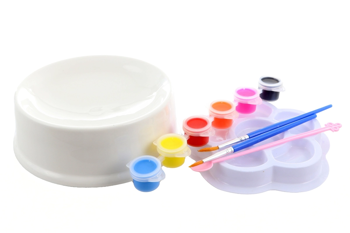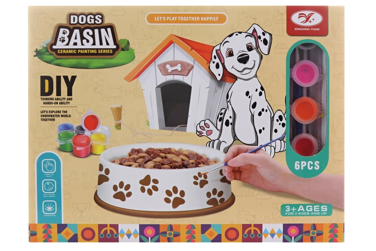 Vytvorte svojmu miláčikovi originálnu jedálenskú misku, ktorú si sami ozdobíte. Táto keramická miska na kŕmenie pre psov podporuje kreativitu a predstavivosť – balenie obsahuje všetko potrebné na maľovanie. Ideálny darček pre deti od 3 rokov aj milovníkov psov. Keramická miska, 6 farieb, 2 štetce, paletka, priemer misky 12 cm.