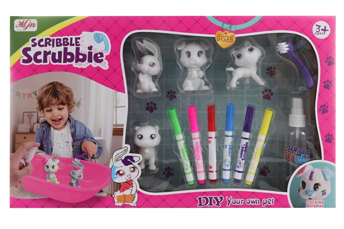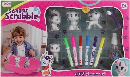 - Kompletná výbava – 4 zvieratká, 6 farieb, vanička, kefka a rozprašovač