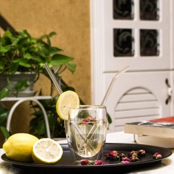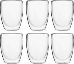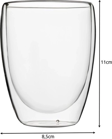 Termo poháre sú ručne vyrobené z lľahkého žiaruvzdorného borosilikátového skla s dvojitou stenou, ktoré si vďaka vytvorenému vákuu dokáže dlhodobo udržať ideálnu teplotu a neprenáša teplo ani chlad do vonkajšej časti. Vďaka tepelnoizolačným vlastnostiam zostáva sklo chladné a nepáli ani pri používaní horúceho nápoja. V prípade studených nápojov sa vonkajšia stena skla nerosí, takže nápoj sa rýchlo neohreje a ľad sa neroztopí.