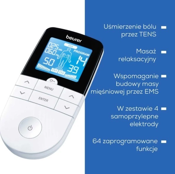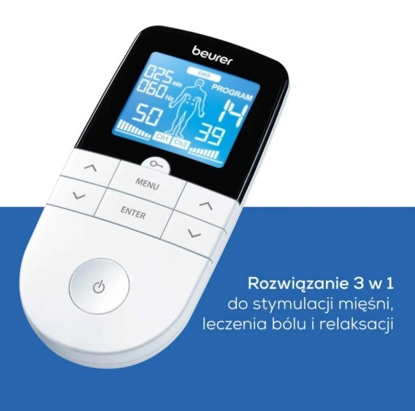 Hľadáte účinnú a šetrnú metódu, ako zmierniť bolesť, posilniť svaly a dopriať telu relax? BEURER EM 49 ponúka kombináciu TENS, EMS a masáže v jednom zariadení. Je ideálny na domáce použitie aj pravidelnú regeneráciu po športe.