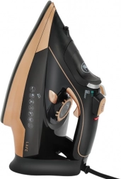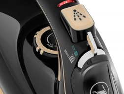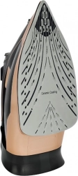 Žehliaca plocha s keramickým povrchom rovnomerne rozvádza teplo, odoláva poškriabaniu a zaisťuje plynulé kĺzanie po všetkých typoch tkanín.