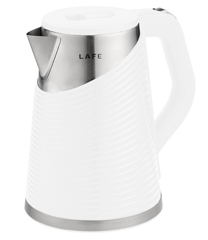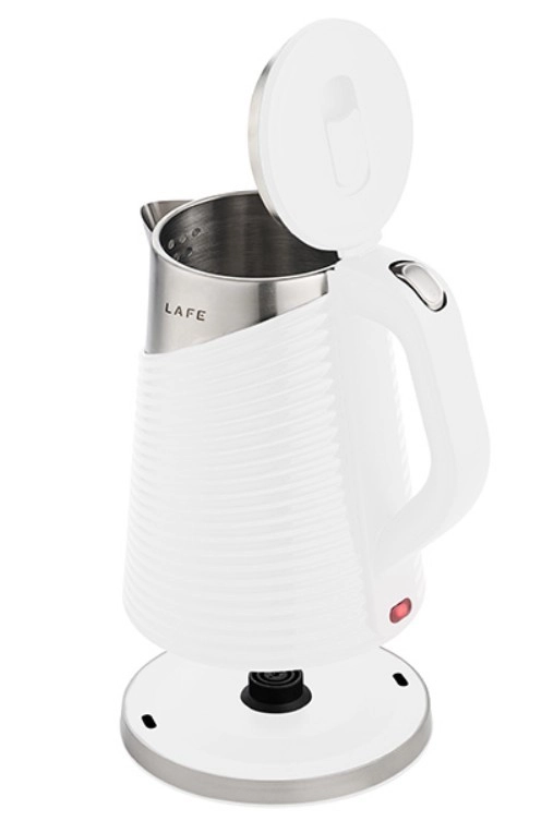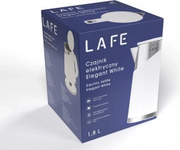 Štýlová a bezpečná rýchlovarná kanvica LAFE Elegant White ponúka rýchly ohrev 1800 W, dvojitú stenu pre lepšiu izoláciu, chladný povrch Cool Touch pre bezpečné dotyky a filter vodného kameňa pre čistú chuť nápojov.