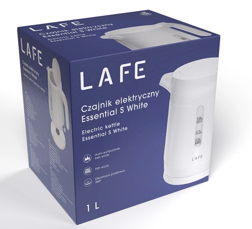 Praktická a spoľahlivá rýchlovarná kanvica LAFE Essential S v bielej farbe prináša rýchly ohrev vody, jednoduché ovládanie a čistý, moderný dizajn. Vďaka kompaktným rozmerom skvele zapadne na kuchynskú linku a objem 1 l je akurát na čaj, kávu či instantnú polievku.