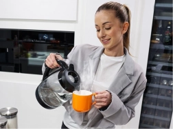 Odolné sklo umožní kontrolu hladiny vody, modré LED svetlo elegantne signalizuje ohrev a dodá kuchyni moderný vzhľad.