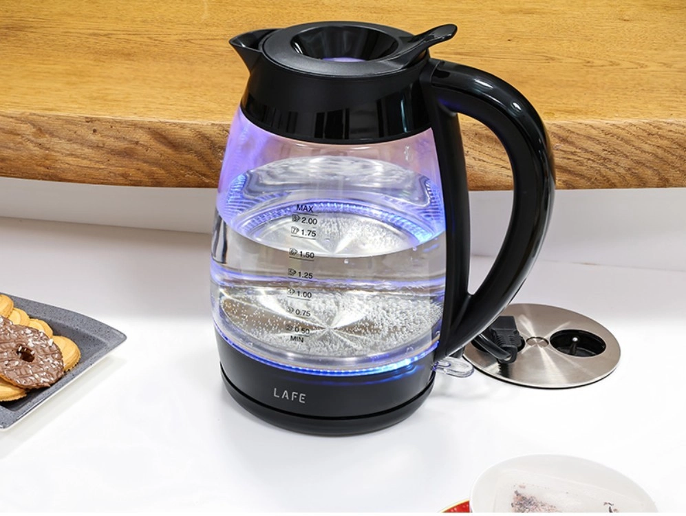 Kanvica LAFE Essential XL kombinuje moderný vzhľad s praktickosťou. Odolné sklo umožňuje jednoducho kontrolovať hladinu vody, zatiaľ čo LED podsvietenie signalizuje ohrev a dodáva kanvici štýl. Vďaka výkonu 2200 W zohreje vodu počas chvíľky pre celú rodinu.
