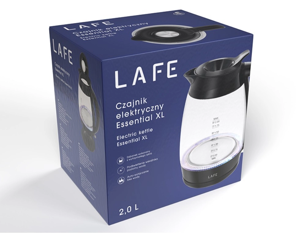 Elegantná a praktická elektrická kanvica LAFE Essential XL s objemom 2 litre prináša rýchly var, prehľadnú sklenenú nádobu a modré LED podsvietenie. Ponúka výkon 2200 W, automatické vypnutie a ochranu pri nedostatku vody – ideálna do domácnosti aj kancelárie.