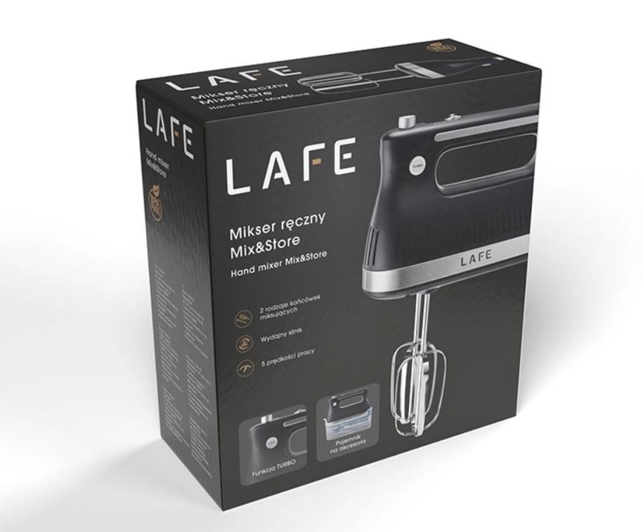 Ručný mixér LAFE Mix&Store je spoľahlivý pomocník na každodenné pečenie aj varenie. Ponúka výkon 500 W, 5 rýchlostí a funkciu Turbo pre extra silu. V balení nájdete 2 typy nadstavcov (metly a hnetacie háky) aj praktický box na uloženie, takže máte všetko vždy po ruke a v poriadku.
