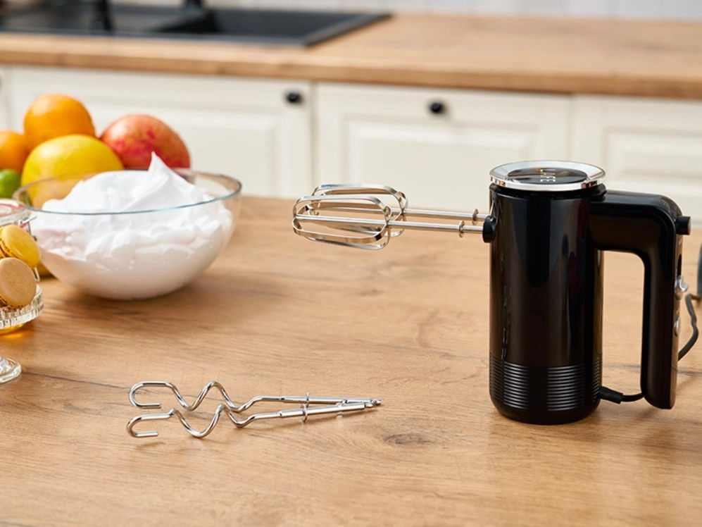 Vďaka 5 stupňom rýchlosti ľahko prispôsobíte tempo spracovávaným surovinám. Nerezové metly perfektne vyšľahajú bielky či smotanu, hákové nadstavce zasa uľahčia prípravu kysnutých aj maslových ciest. Jednoduchá výmena nadstavcov pomocou tlačidla Eject a intuitívne ovládanie šetrí čas aj námahu.