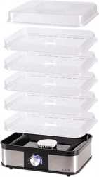 Pre bezpečnosť je sušička vybavená ochranou proti prehriatiu. Stabilná základňa z nehrdzavejúcej ocele, prehľadný otočný ovládač a jednoduchá údržba z nej robia spoľahlivého pomocníka do každej domácnosti.