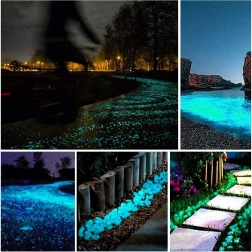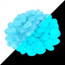 Dekoratívne svietiace kamienky v modrej farbe cez deň absorbujú svetlo a v noci jemne žiaria, čím vytvárajú pôsobivý vizuálny efekt bez elektriny. Sú vyrobené z odolného, netoxického plastu s jemne leštenými hranami, vhodné pre interiér aj exteriér – od záhradných chodníčkov po akváriá. V balení je 100 kusov pre kreatívne aranžmány.