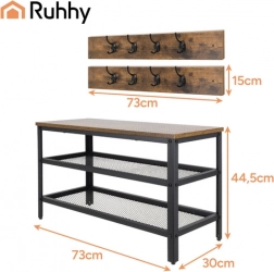 Horná hnedá MDF doska dodá interiéru teplý akcent a pohodlné miesto na sedenie pri obúvaní. Vďaka kompaktným rozmerom 73 × 44 × 30 cm skvele zapadne aj do menších priestorov. Montáž zvládnete počas cca 15 minút – v balení je kompletná montážna sada vrátane skrutkovača a imbusu.