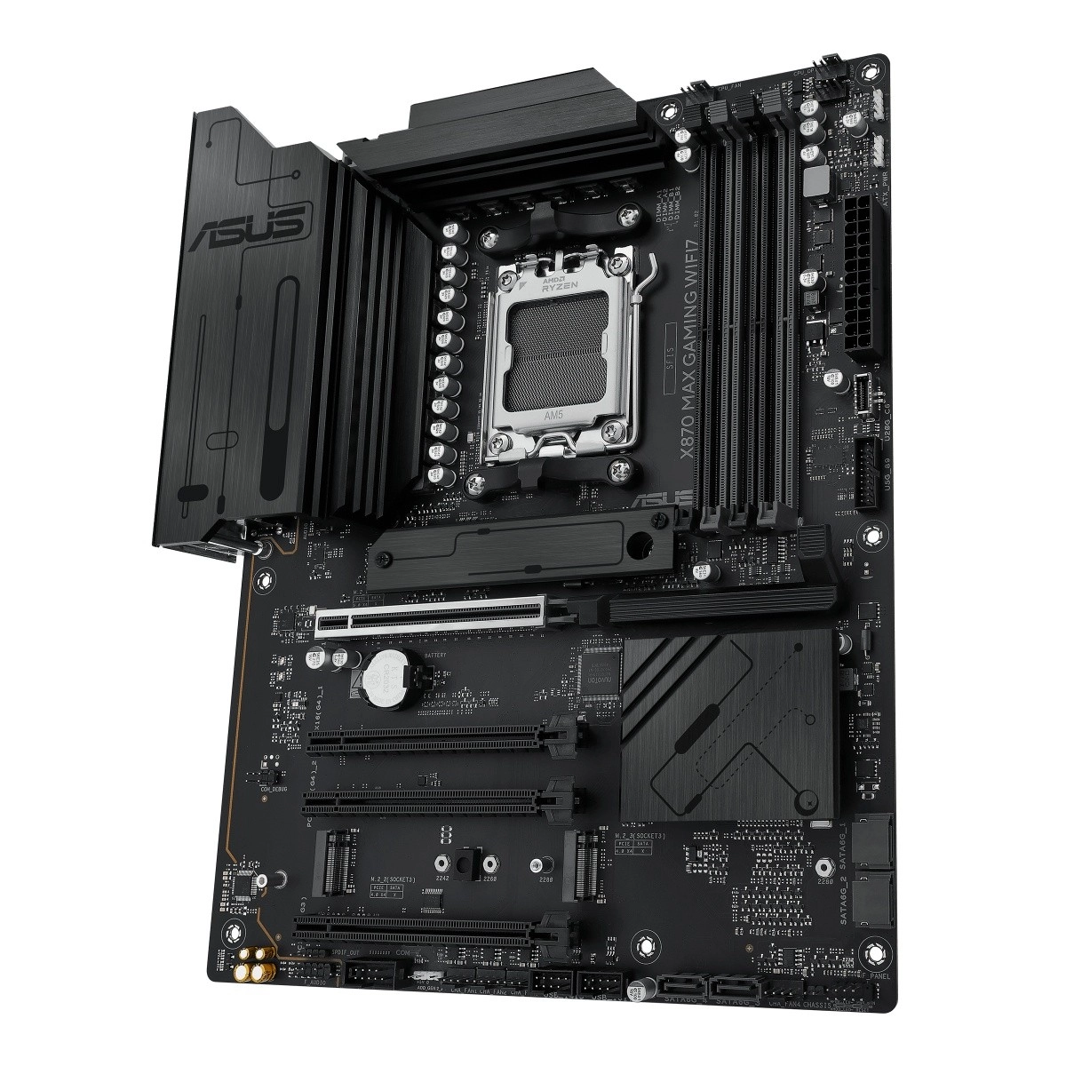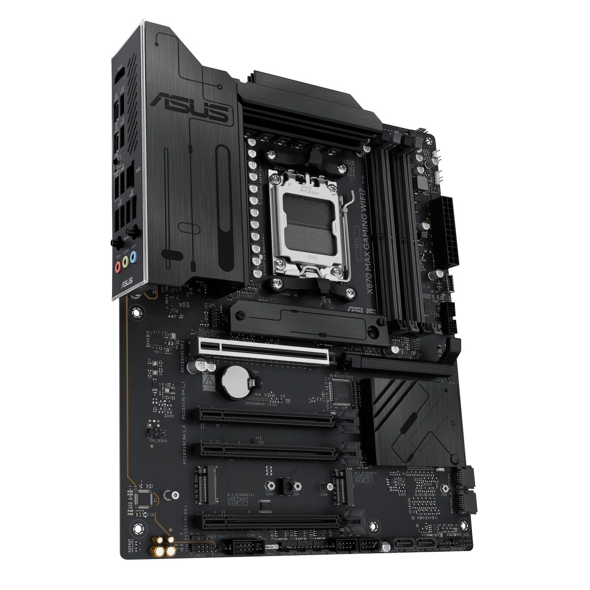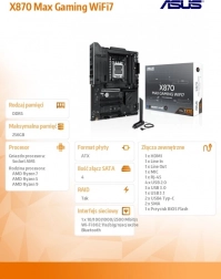 ASUS X870 Max Gaming WiFi 7 je špičková herná základná doska pre platformu AM5, ktorá odomyká plný výkon procesorov AMD Ryzen radu 9000. Spája stabilnú napájaciu kaskádu, masívne chladiče VRM a M.2 s modernou konektivitou vrátane Wi‑Fi 7 a USB‑C, aby poskytla rýchlosť, stabilitu a šírku pásma pre hry, tvorbu obsahu aj AI pracovné postupy.