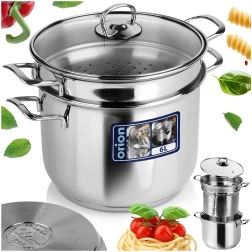 Praktický nerezový hrniec na cestoviny ANETT s objemom 6 l a priemerom 22 cm so sklenenou pokrievkou a vložkou so sitkom na jednoduché cedenie. Ideálny na varenie cestovín, zeleniny aj bežné každodenné varenie. Odolná nerezová oceľ, energeticky úsporné viacvrstvové dno a kompatibilita s indukciou zabezpečia rýchle, rovnomerné zohrievanie a pohodlné použitie v každej kuchyni.