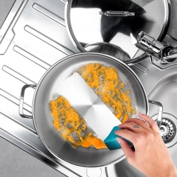 Silné steny a kvalitná zliatina zaručujú dlhú životnosť, odolnosť proti korózii a jednoduché čistenie. Matný povrch s lesklým horným pásom dodáva elegantný vzhľad.