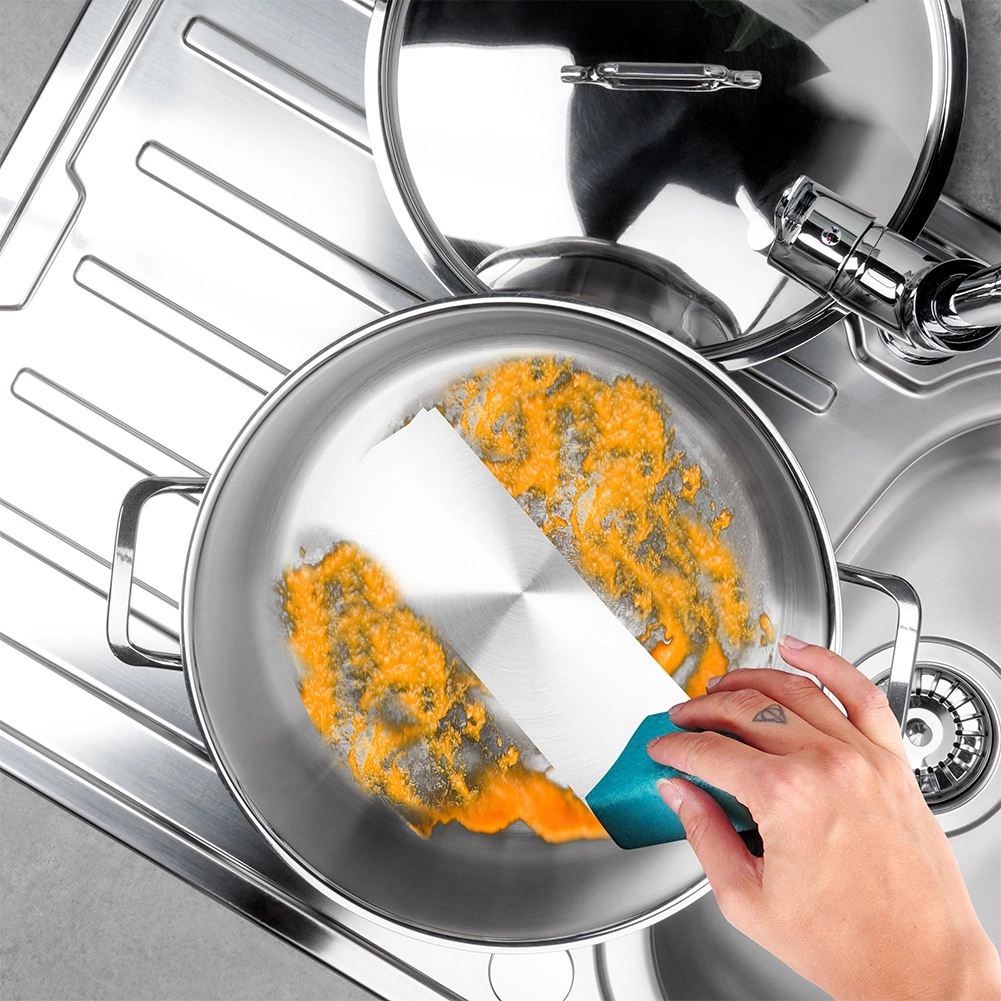 Špeciálne sendvičové dno rýchlo preberá a rovnomerne šíri teplo, skracuje dobu varenia a šetrí energiu. Ideálne na varenie s minimom tuku bez straty chuti a živín.