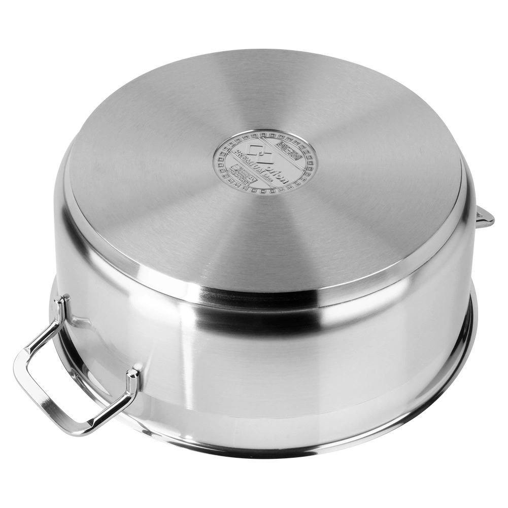 Súčasťou je presne lícujúca nerezová pokrievka a pohodlné bočné ušká na bezpečnú manipuláciu. Vďaka dobre tvarovanému telu sa hrniec ľahko čistí a možno ho umývať v umývačke riadu. Skvelá voľba na polievky, omáčky aj dusené jedlá.