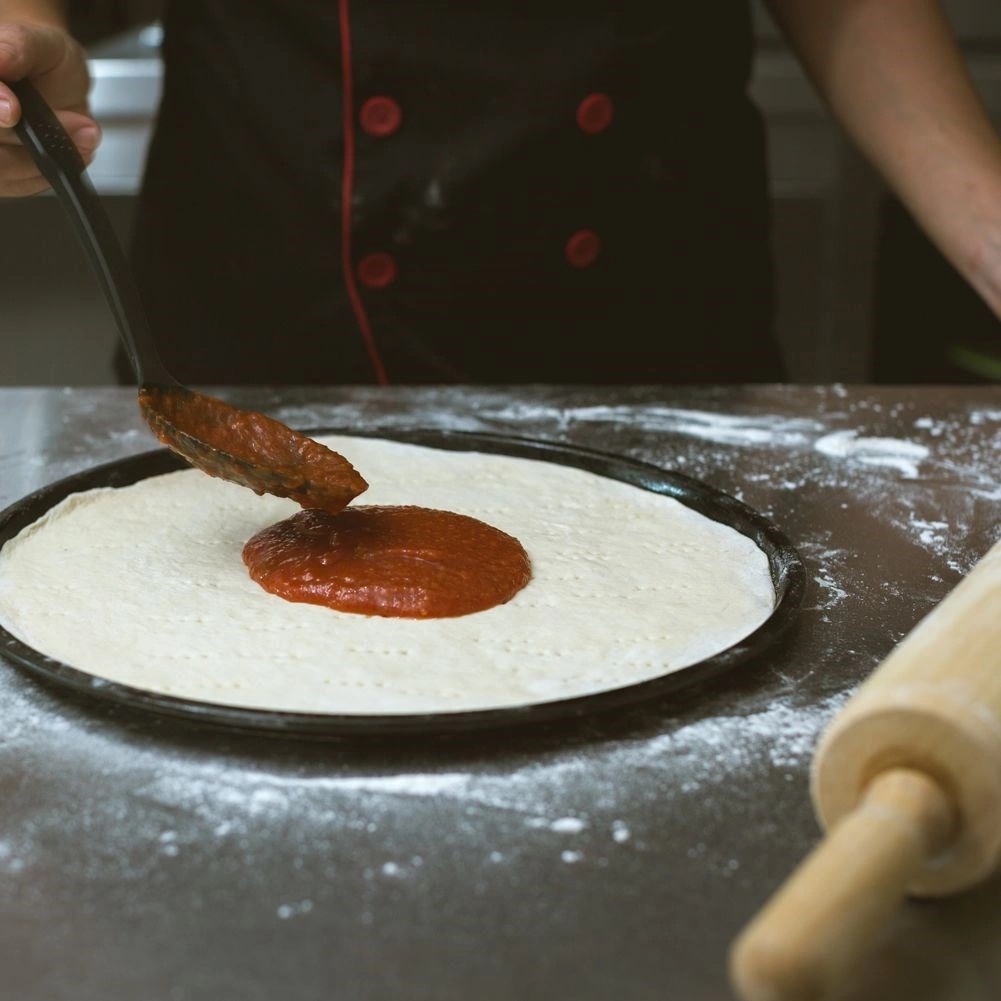 Stabilný okraj uľahčuje manipuláciu a prípravu pizze od vyvaľkania cesta až po vloženie do rúry.