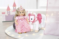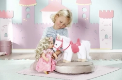 Malý sweet poník BABY ANNABELL je mäkkučký kamarát, ktorý premení každé hranie na princeznovské dobrodružstvo. Vďaka pohodlnému sedlu a elegantnej uzde s korunkou si bábika užije bezpečnú vychádzku a deti množstvo nežných príbehov.