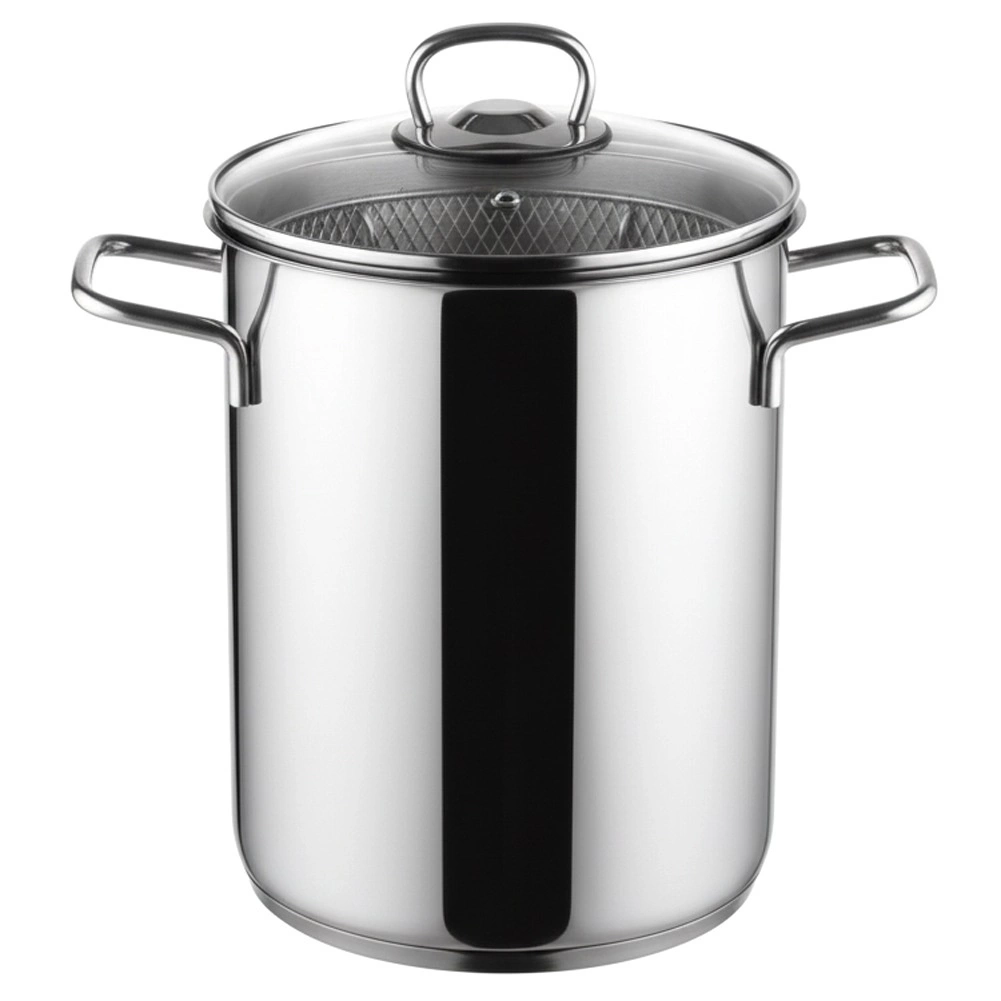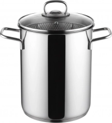 Nerezový hrniec ANETT je robustne spracovaný z ocele 304 – vonkajšie steny s vysokým leskom, vnútro matné pre jednoduchú údržbu. Sklenená pokrievka s nerezovým lemom a odvzdušňovacím otvorom uľahčuje kontrolu varu, vyberateľný nerezový kôš s držadlom zaistí pohodlné ponorenie a okamžité scedenie bez ďalšieho cedidla.