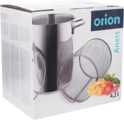 Nerezový kôš s praktickým držadlom umožní vložiť špargľu či cestoviny a po uvarení ich bezpečne a rýchlo scediť priamo z hrnca.