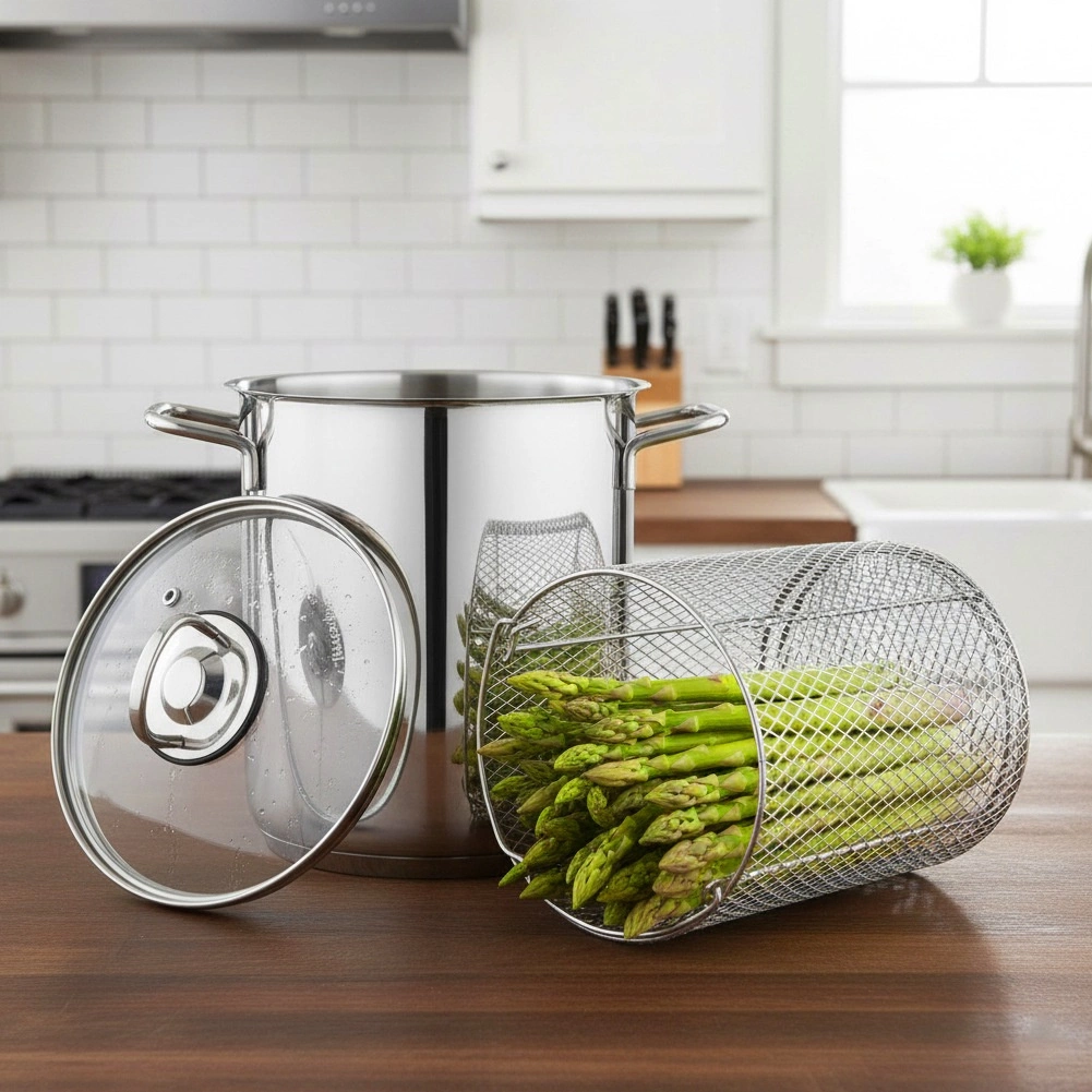 Vysoký tvar a vložený kôš sú perfektné na varenie špargle, špagiet, ryže aj na blanšírovanie zeleniny a ovocia.