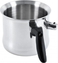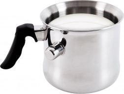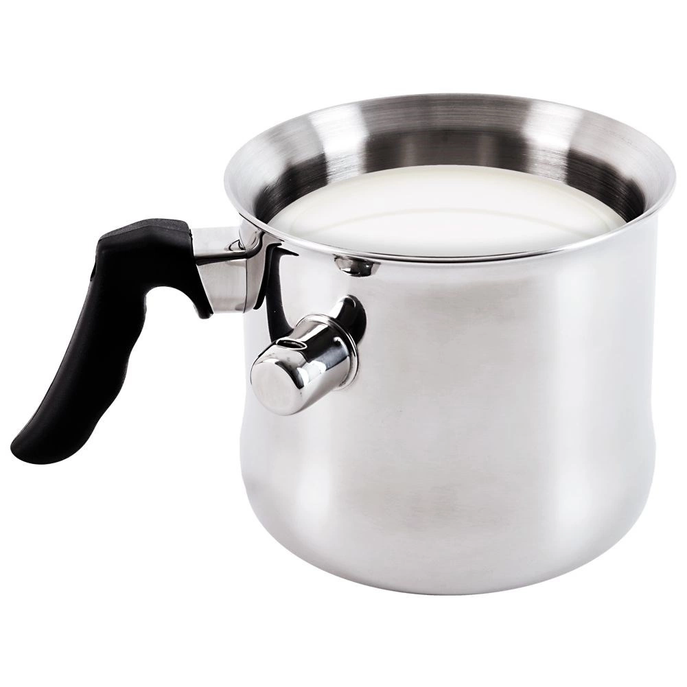 Tento kvalitný nerezový hrniec s dvojitou stenou a vodným plášťom je ideálny na šetrné ohrievanie a varenie mlieka, prípravu omáčok, pudingov aj rozpúšťanie čokolády. Pri dosiahnutí varu sa ozve píšťalka, ktorá vás upozorní, že je mlieko hotové, a zabráni jeho vykypeniu.