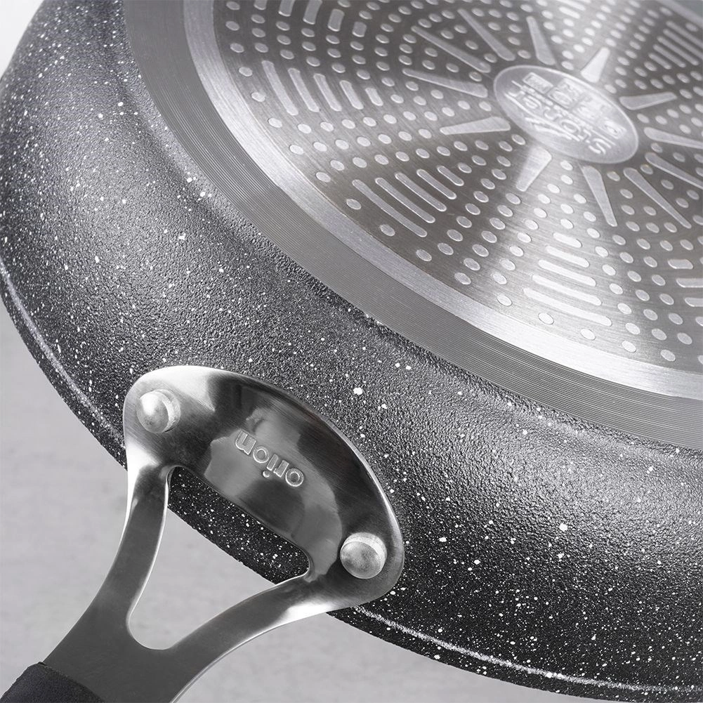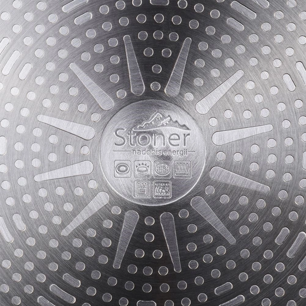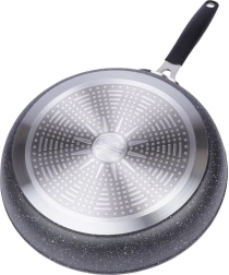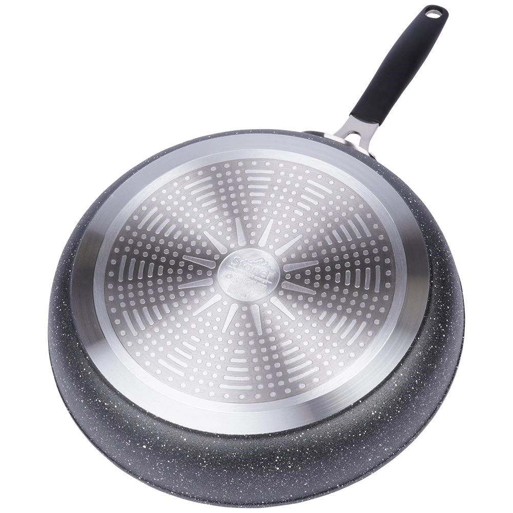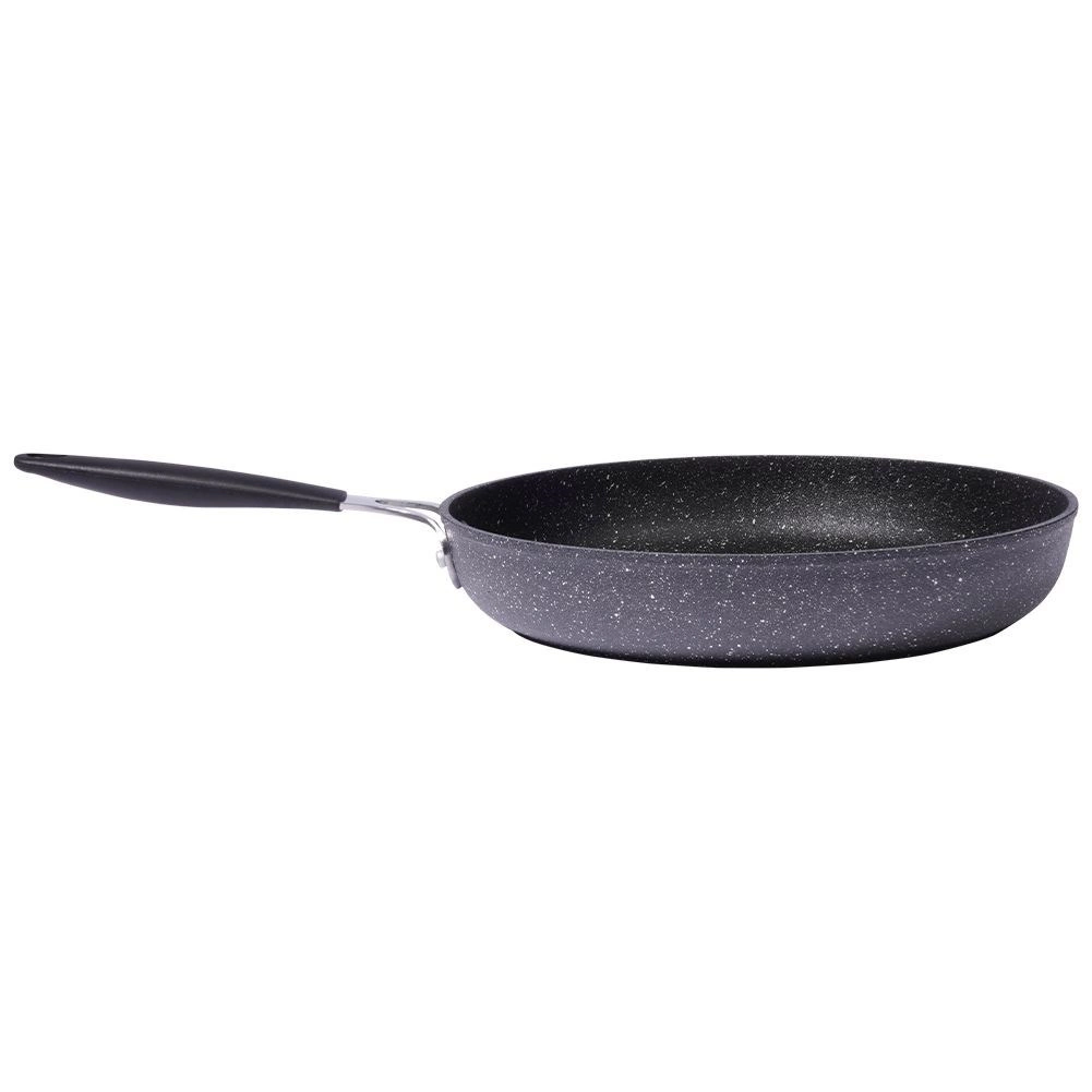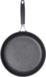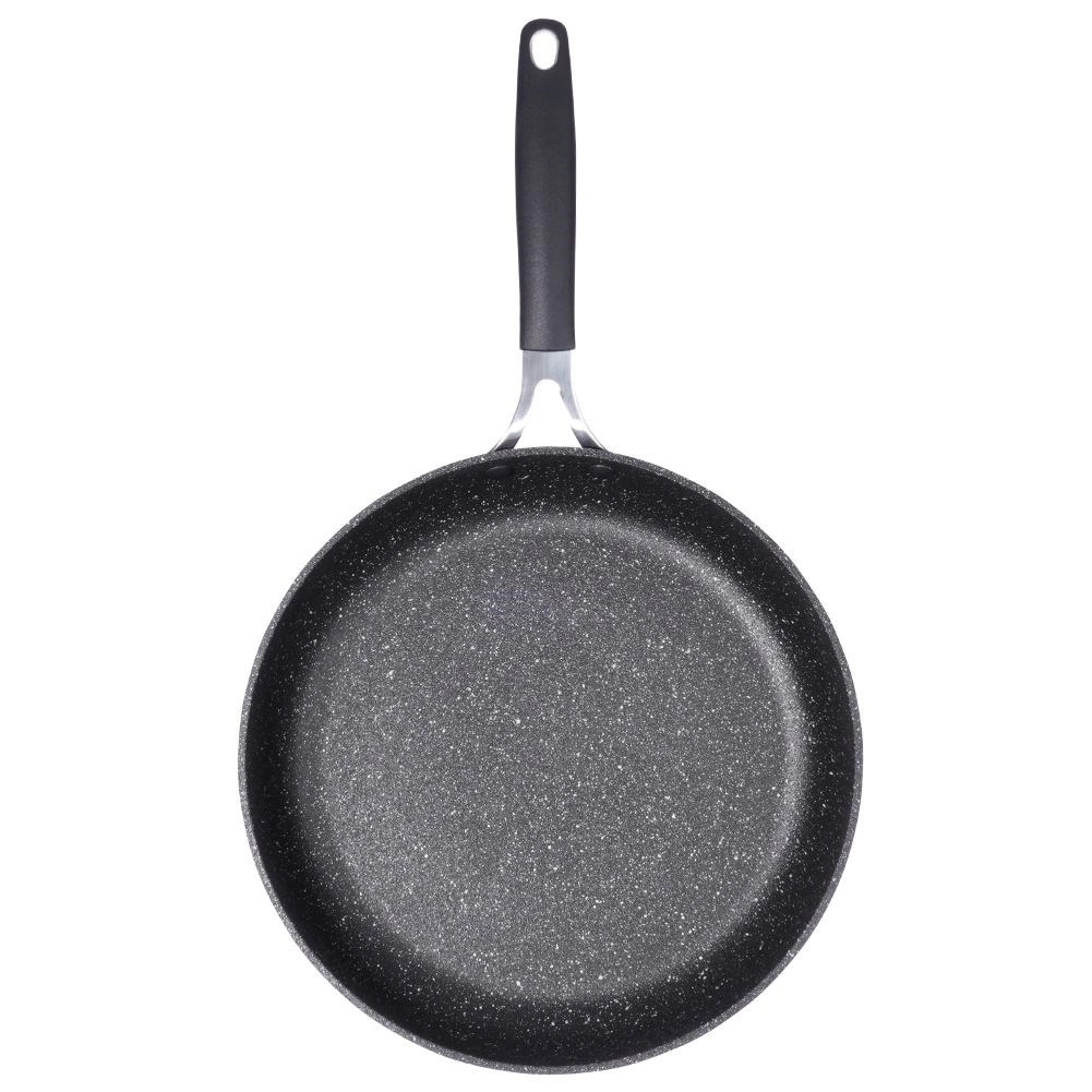 Robustná granitová panvica STONER s priemerom 28 cm z hliníkového odliatku s kamenným povrchom na každodenné varenie. Ponúka nepriľnavý povrch na zdravé vyprážanie s minimom tuku, rýchly a rovnomerný rozvod tepla, kompatibilitu so všetkými typmi sporákov vrátane indukcie a ergonomickú rukoväť s otvorom na zavesenie. Vhodná aj do rúry (rukoväť do 200 °C), ľahko sa čistí a je bez PFOA a PTFE.