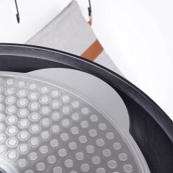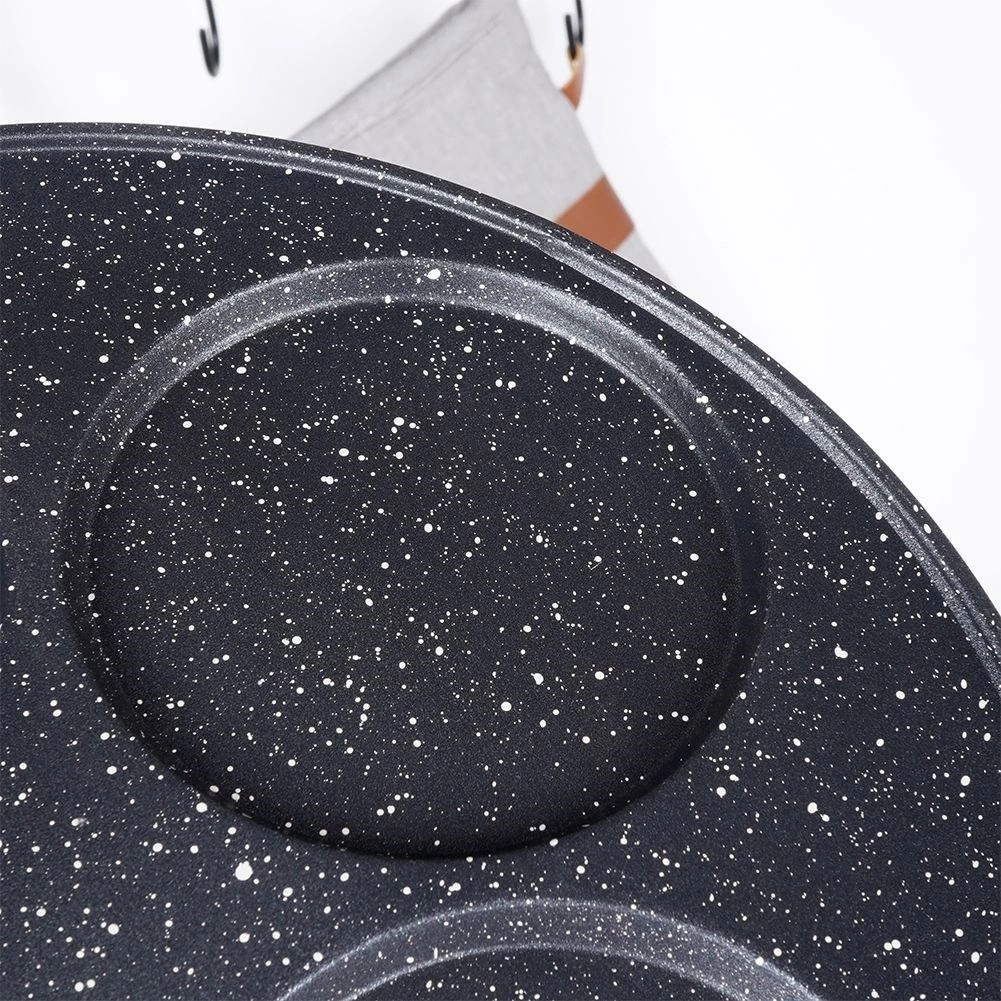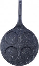 Táto univerzálna panvica so 4 kruhovými formami je ideálna na volské oká, mini lievance, zemiakové placky či malé palacinky. Nepriľnavá žulová povrchová úprava Pfluon Granite zabraňuje pripaľovaniu a umožňuje vyprážať s minimom tuku. Vďaka rovnomernej distribúcii tepla dosiahnete vždy zladené a krásne prepečené porcie.