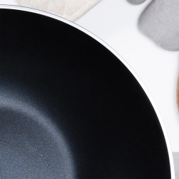 Objavte všestrannú wok panvicu s priemerom 30 cm, ktorá vďaka diamantovej nepriľnavej vrstve zabezpečí hladké varenie bez pripálenia a jednoduché servírovanie. Hrúbka steny 4 mm a hlboké, zaoblené boky podporujú dokonalé premiešavanie surovín, výbornú akumuláciu tepla a úspornú prevádzku.