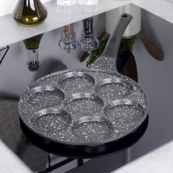 Upečte si dokonale okrúhle lievance, mini palacinky alebo volské oká naraz. Sedem samostatných foriem zabezpečí rovnakú veľkosť aj rovnomerné prepečenie, zatiaľ čo granitová nepriľnavá vrstva Pfluon bráni pripaľovaniu a uľahčuje servírovanie aj čistenie.