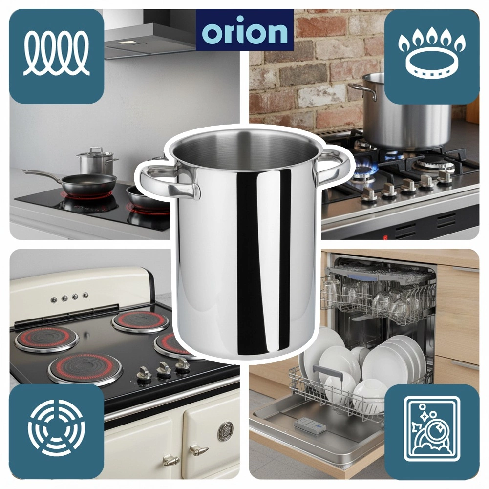 Vysoký nerezový hrniec s priemerom 14 cm a objemom 3,2 l je ideálny na varenie špargle, špagiet a ďalších dlhých surovín. Vďaka viacvrstvovému akutermickému dnu výborne akumuluje a rozvádza teplo, varí úsporne s minimom vody a tuku. Má leštený vonkajší povrch, matný vnútro pre ľahkú údržbu a pevné nitované úchyty pre bezpečnú manipuláciu. Vhodný na plyn, elektrinu, sklokeramiku, halogén aj indukciu a do umývačky.