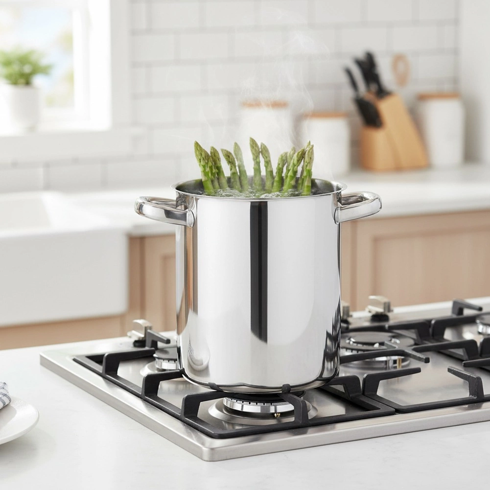 Vysoké telo hrnca je perfektné na varenie špargle, špagiet a ďalších dlhých potravín bez lámania.