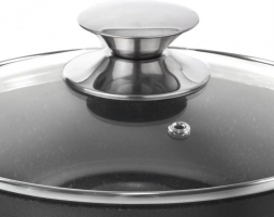 Transparentná pokrievka s kovovým knobom a ventilom umožňuje kontrolovať var a uvoľňovať prebytočnú paru.