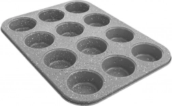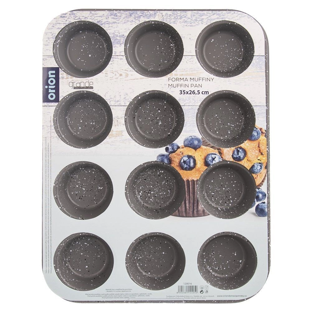Praktická granitová forma na muffiny na pečenie až 12 kusov naraz. Vďaka nepriľnavej povrchovej úprave z uhlíkovej ocele sa cesto nepripáľa a pečenie je jednoduché aj s minimom tuku. Forma je odolná do 230 °C, vhodná do plynových aj elektrických rúr a možno ju umývať v umývačke – ideálna na domáce muffiny, cupcakes, mini dezerty aj sušienky.