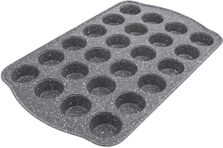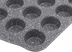 Táto obdĺžniková forma ORION Grande s granitovým vzhľadom je ideálna na každodenné pečenie mini muffinov, cupcakes aj slaných jednohubiek. Nepriľnavá povrchová úprava umožňuje piecť s minimom tuku a zaistí jednoduché vybratie bez pripálenia. Vďaka 24 formičkám pripravíte celú dávku naraz – rýchlo, úsporne a s konzistentnými výsledkami.