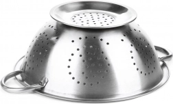 Dva pohodlné bočné úchyty zabezpečia bezpečnú manipuláciu, zatiaľ čo vyvýšený podstavec udrží cedník stabilne v dreze aj na pracovnej doske. Husté perforácie umožňujú rýchly odtok vody, takže potraviny nezostávajú stáť vo vode.