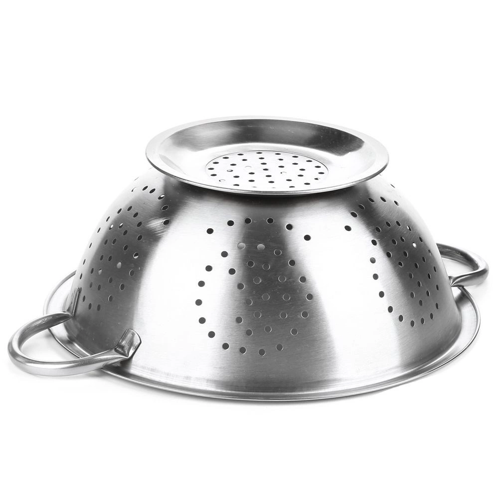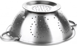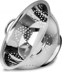 Univerzálny nerezový cedník v tvare misky s priemerom 24 cm so stabilnou podstavou a dvoma úchytmi je ideálny na umývanie ovocia a zeleniny aj na cedenie cestovín či ryže. Odolná nerezová oceľ, množstvo odtokových otvorov a ergonomické úchyty zabezpečia pohodlné a bezpečné používanie v každej kuchyni.