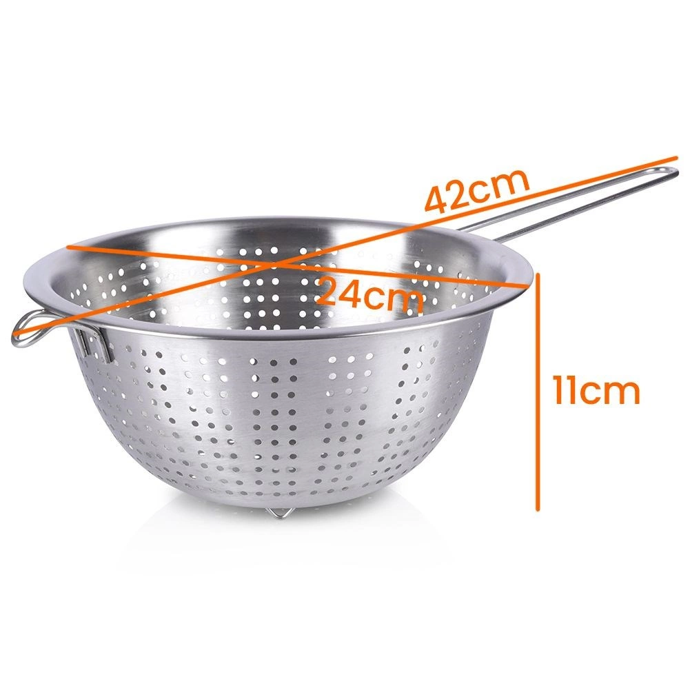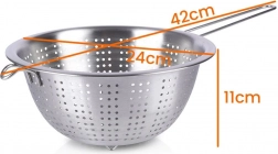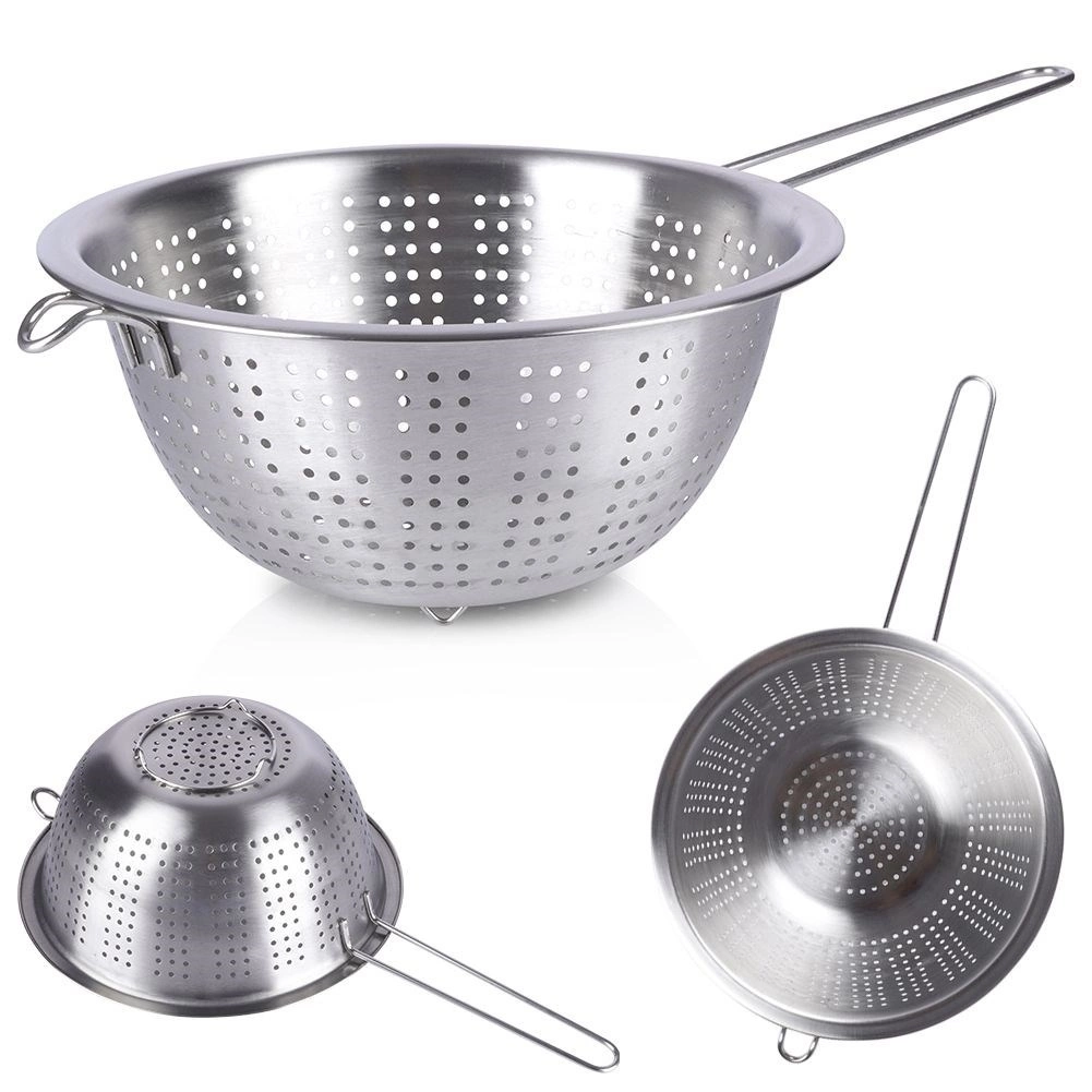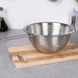 Praktický nerezový cedník s priemerom 24 cm s dlhou rukoväťou a stabilnými nožičkami je ideálny na každodenné kuchynské práce. Skvele poslúži na scedenie cestovín, preplachovanie ovocia a zeleniny aj ryže. Vďaka kvalitnej nerezovej oceli je odolný, ľahko sa čistí a má pohodlné držanie aj možnosť zavesenia.